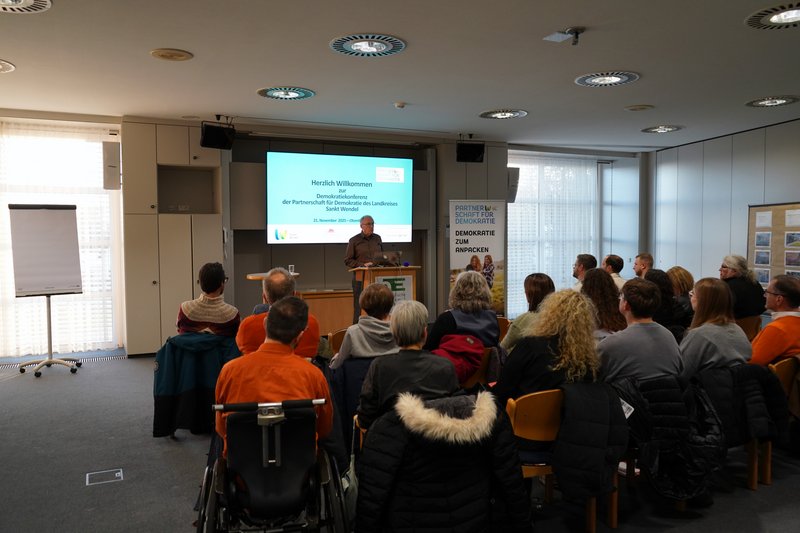 Jede Partnerschaft für Demokratie muss eine Situations- und Ressourcenanalyse durchführen lassen. Die Analyse soll aktuelle kommunale Problemlagen darstellen und Grundlage für Handlungskonzepte bilden, die die Ziele des Bundesprogramms (Extremismus vorzubeugen, Handlungskonzepte herauszuarbeiten sowie die Jugendpartizipation zu fördern) verfolgen. Die Partnerschaft für Demokratie des Landkreises Sankt Wendel hat das Institut für Demokratiepolitik & Organisationsberatung mit der Erstellung der Analyse beauftragt. Während der Demokratiekonferenz stellte der Institutsleiter erste Ergebnisse der Analyse vor, die Mitte Dezember vorliegen wird und als eine Grundlage der weiteren Arbeit der Partnerschaft für Demokratie dienen soll.