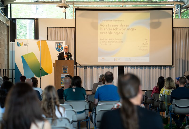 Zuvor sprachen Landrat Udo Recktenwald und Peter Klär, Bürgermeister der Kreisstadt St. Wendel. Beide betonten die Bedeutung des Hochhaltens demokratischer Werte, des Eintretens für ein demokratisches Miteinander und der Verteidigung des demokratischen Systems.