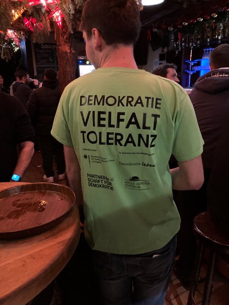 Die T-Shirts werden weiterhin in den Gastronomiebetrieben getragen – um so ein klares Zeichen für Demokratie, Vielfalt und Toleranz zu setzen!